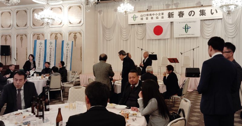 過去最高の出席者で会場は盛り上がり、歓談中、研修交流委員会より県南中経協30周年記念事業「立川談春独演会」の案内と販売協力をお願いしました。