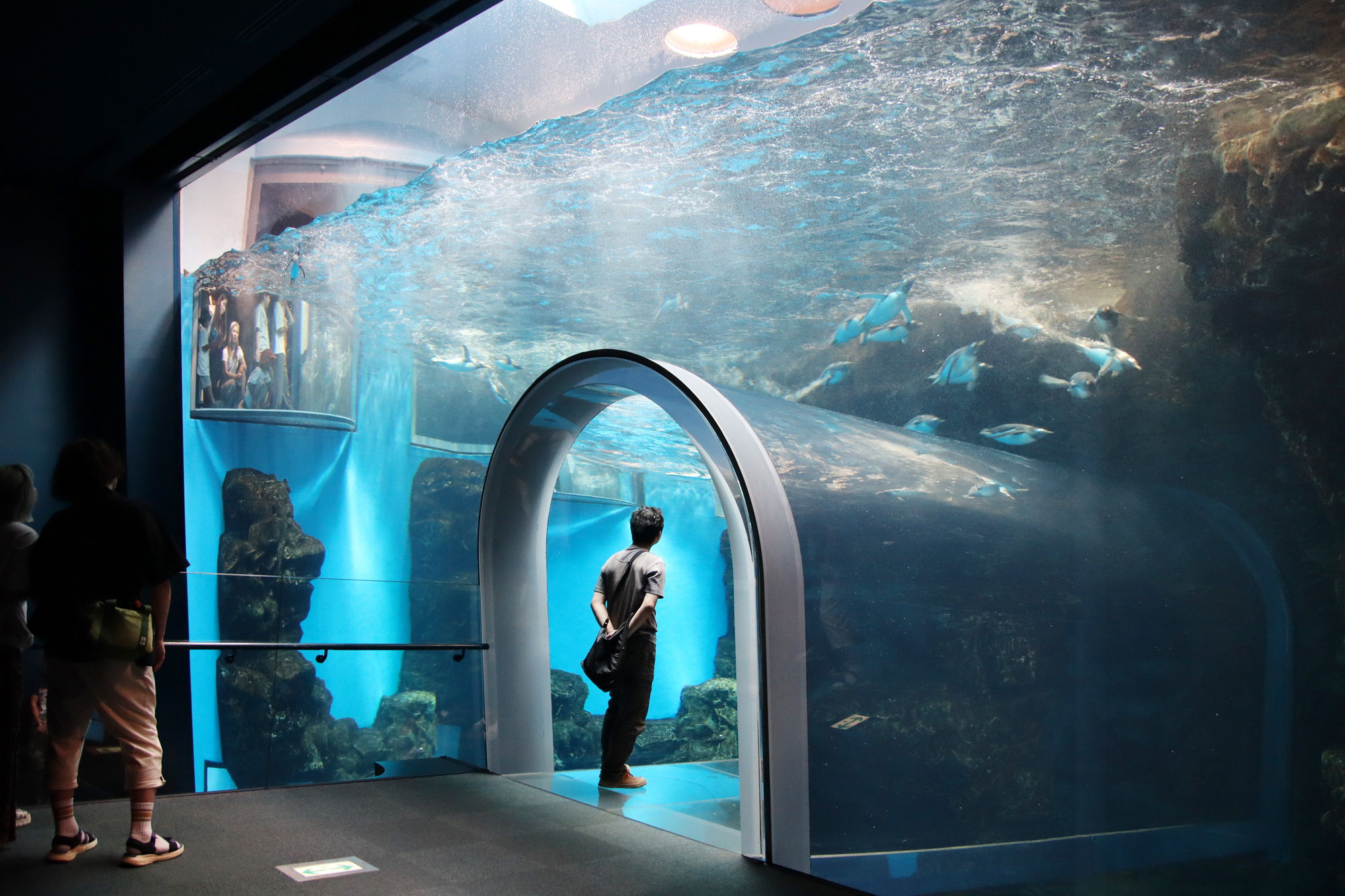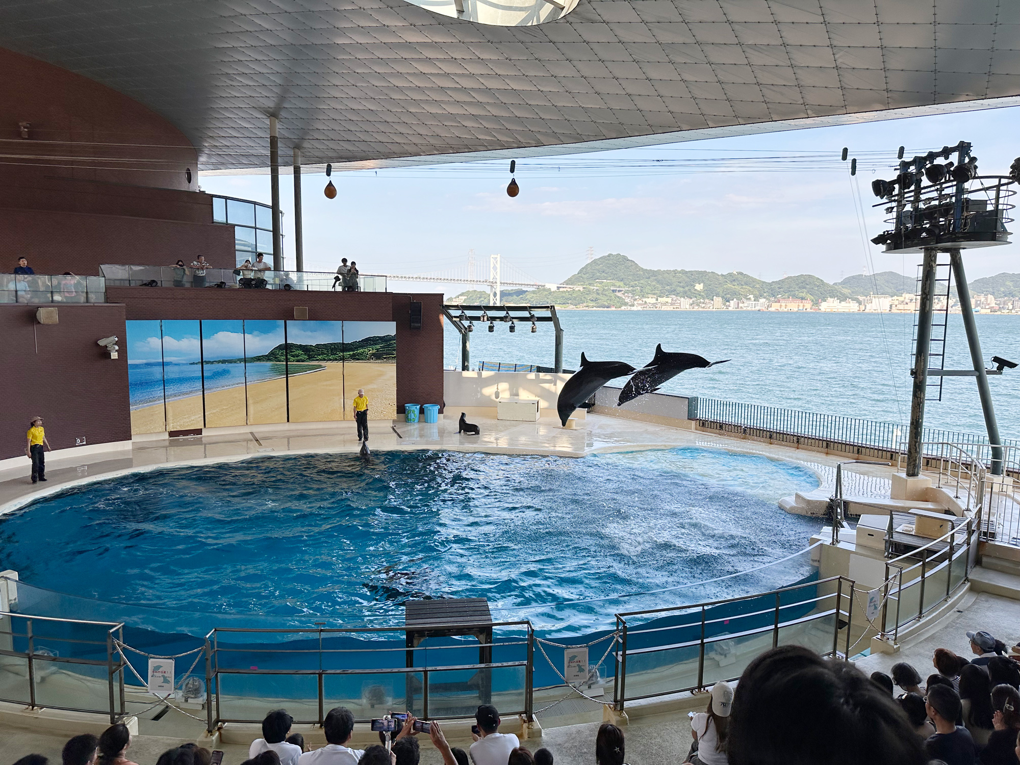 研修で行った海響館では、たまたま入ったレストランからイルカショーを水面下から観覧できました。